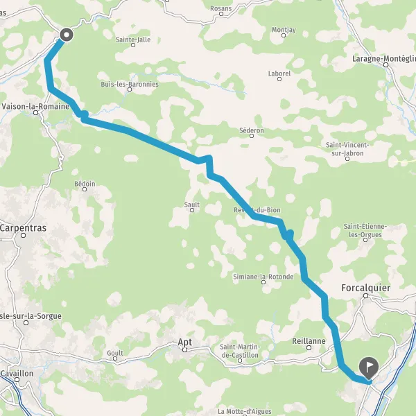Tourner légèrement à droite sur D40 (Route de Montbrun) et continuer sur 22 kilomètres