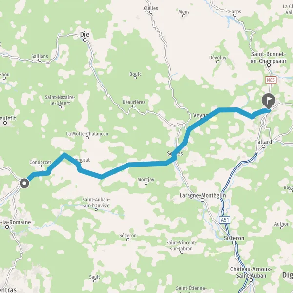 Tourner légèrement à gauche sur D994 (Avenue de Veynes) et continuer sur 2 kilomètre