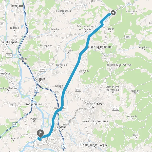 Au rond-point, prendre la 2ème sortie sur D977 (Route de Vaison-la-Romaine) et continuer sur 8,3 kilomètres