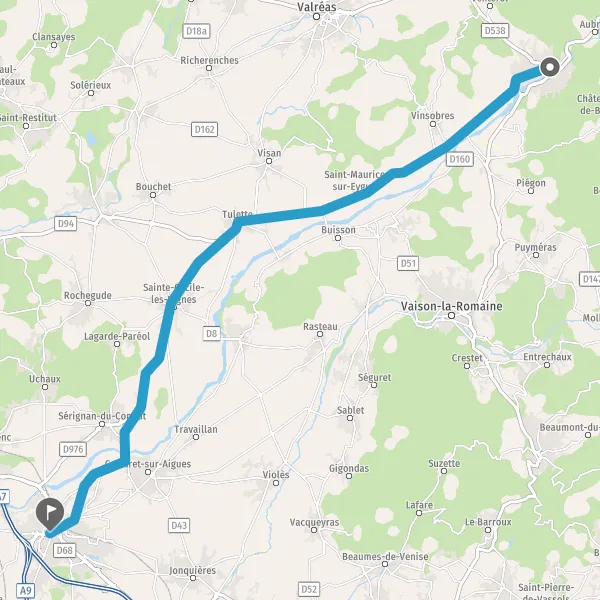 Au rond-point, prendre la 2ème sortie sur D94 (Route de Nyons) et continuer sur 6,7 kilomètres