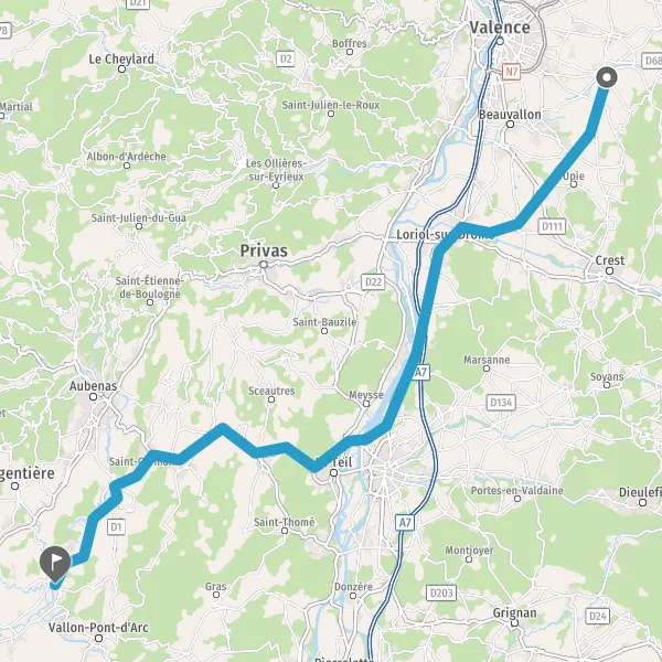 Au rond-point, prendre la 1ère sortie sur N102 (Route d'Aubenas) et continuer sur 8,3 kilomètres