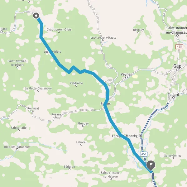Au rond-point, prendre la 2ème sortie sur D93 (Route de Gap) et continuer sur 21 kilomètres