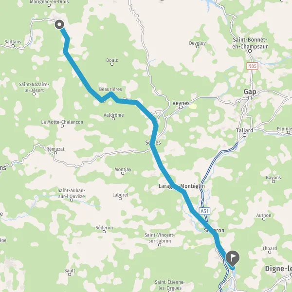Au rond-point, prendre la 2ème sortie sur D93 (Route de Gap) et continuer sur 21 kilomètres