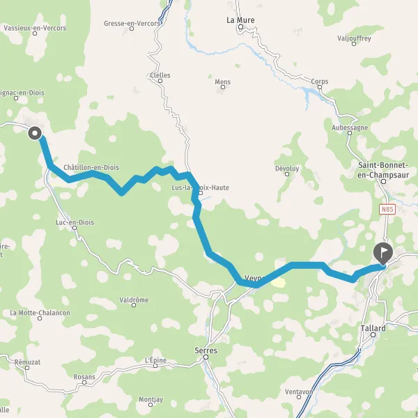 Tourner légèrement à gauche sur D994 (Avenue de Veynes) et continuer sur 2 kilomètre