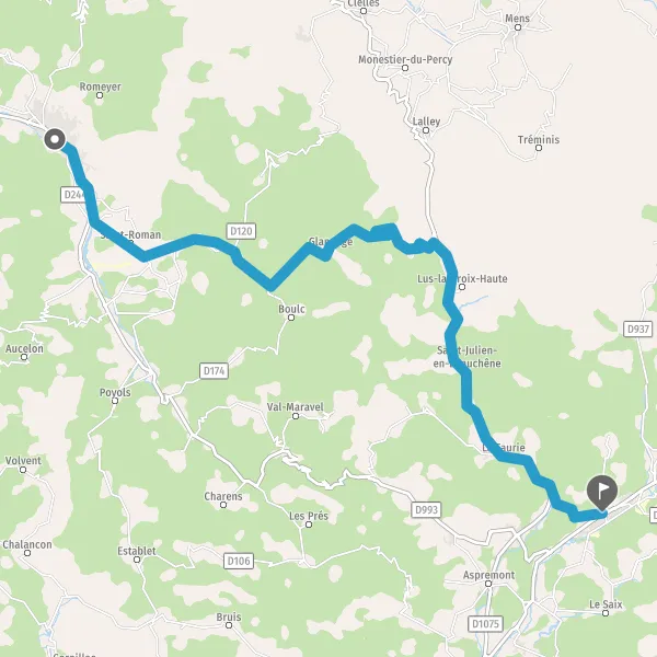 Au rond-point, prendre la 2ème sortie sur D539 (Route de Châtillon en Diois) et continuer sur 3,7 kilomètres
