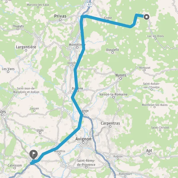 Au rond-point, prendre la 2ème sortie sur D93 (Avenue de la Clairette) et continuer sur 14 kilomètres