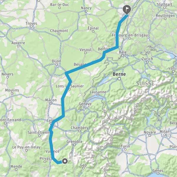 Prendre à droite et rejoindre A36 E60. Continuer sur 185 kilomètres