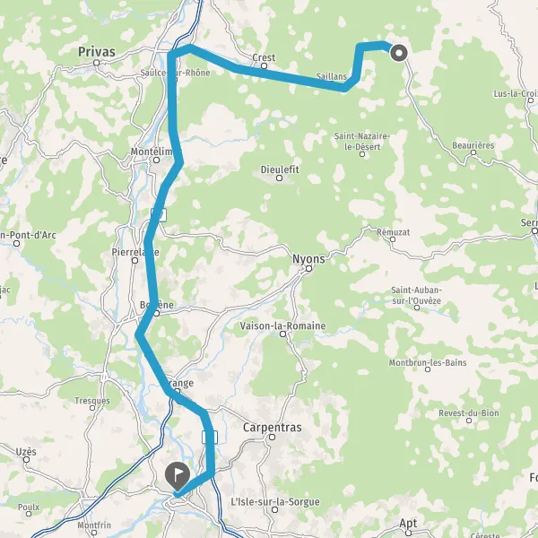 Au rond-point, prendre la 2ème sortie sur D93 (Avenue de la Clairette) et continuer sur 14 kilomètres
