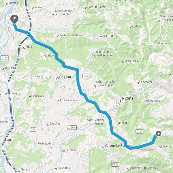 Au rond-point, prendre la 2ème sortie sur D4 (Route de Vinsobres) et continuer sur 2,1 kilomètres
