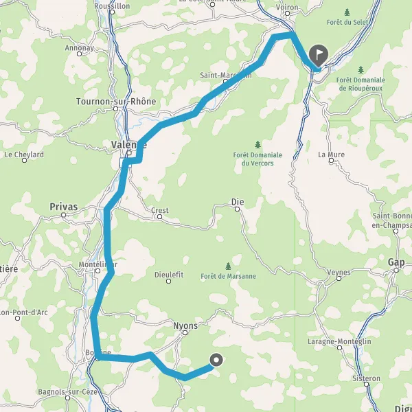 Au rond-point, prendre la 1ère sortie sur D5 (Route de Mollans) et continuer sur 15 kilomètres