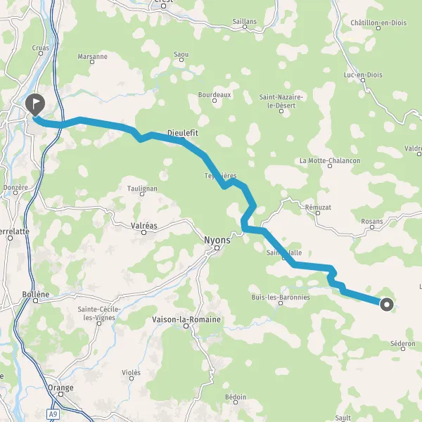 Tourner légèrement à droite sur D538 (Route de Nyons) et continuer sur 3,8 kilomètres