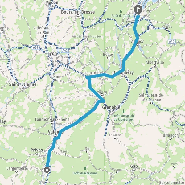 Prendre à droite et rejoindre A43 E70. Continuer sur 47 kilomètres