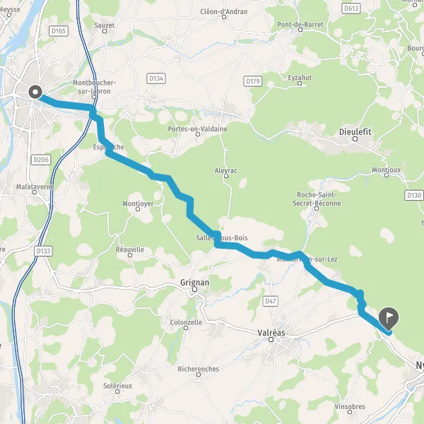 Tourner légèrement à droite sur D538 (Route de Nyons) et continuer sur 900 mètres