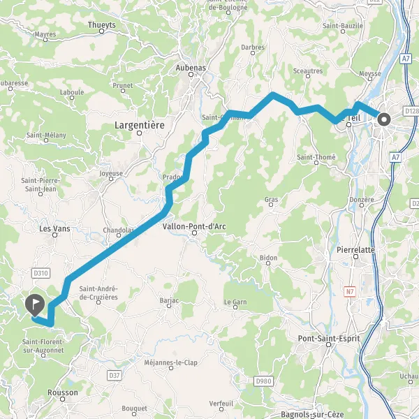 Au rond-point, prendre la 1ère sortie sur N102 (Route d'Aubenas) et continuer sur 8,3 kilomètres