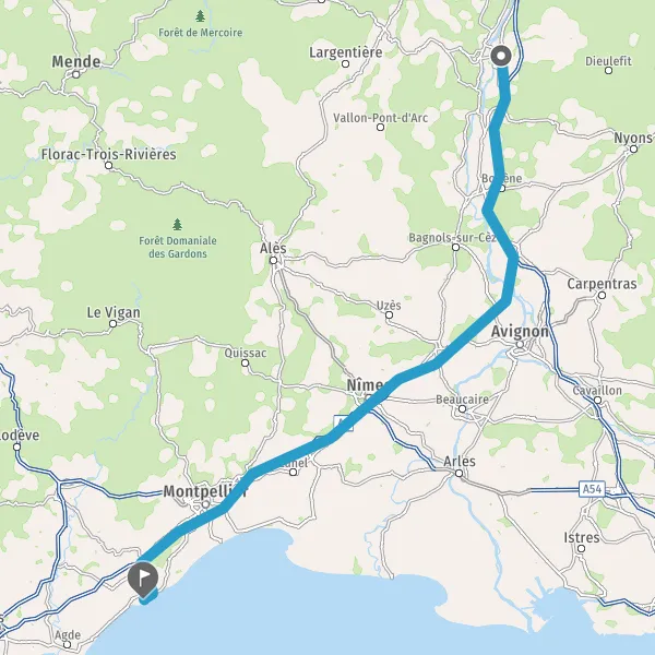 A7AlèsOrangeAvignonNîmesMarseille