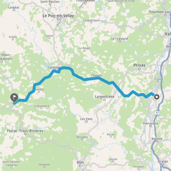 Au rond-point, prendre la 1ère sortie sur N102 (Route d'Aubenas) et continuer sur 8,3 kilomètres
