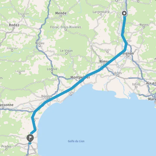 Continuer E15 (La Languedocienne) sur 153 kilomètres
