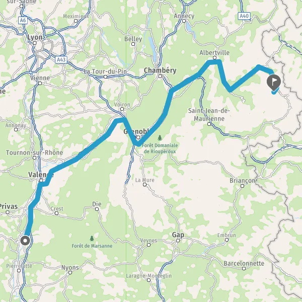 Prendre à droite et rejoindre A43 E70. Continuer sur 19 kilomètres