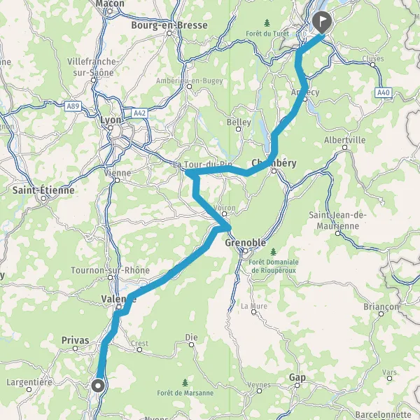 Prendre à droite et rejoindre A43 E70. Continuer sur 47 kilomètres