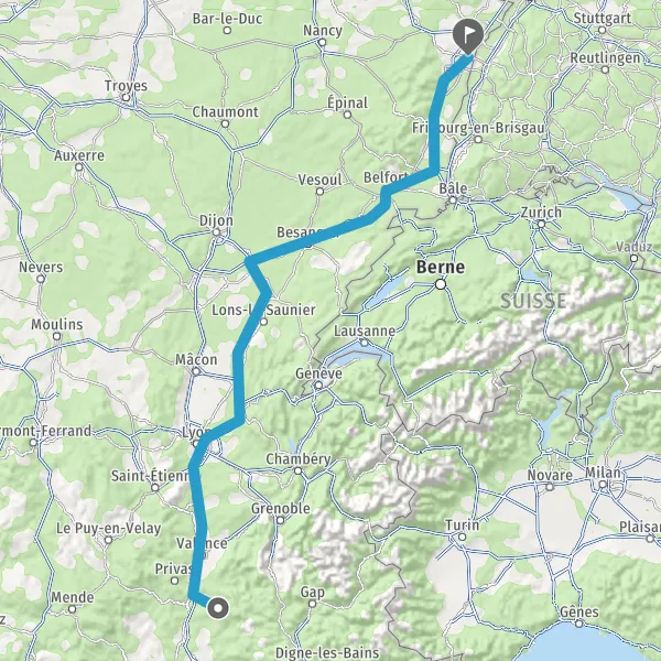 Prendre à droite et rejoindre A36 E60. Continuer sur 125 kilomètres