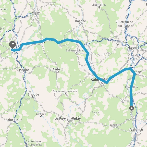 Prendre à droite et rejoindre A72. Continuer sur 53 kilomètres