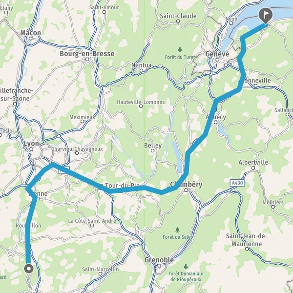 Prendre à droite et rejoindre A43 E711 E70. Continuer sur 34 kilomètres