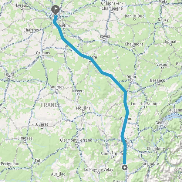 Prendre à droite et rejoindre A6. Continuer sur 294 kilomètres