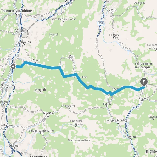 Tourner légèrement à droite sur D993 (Route de Die) et continuer sur 12 kilomètres