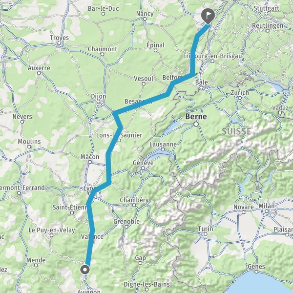 Prendre à droite et rejoindre A36 E60. Continuer sur 185 kilomètres