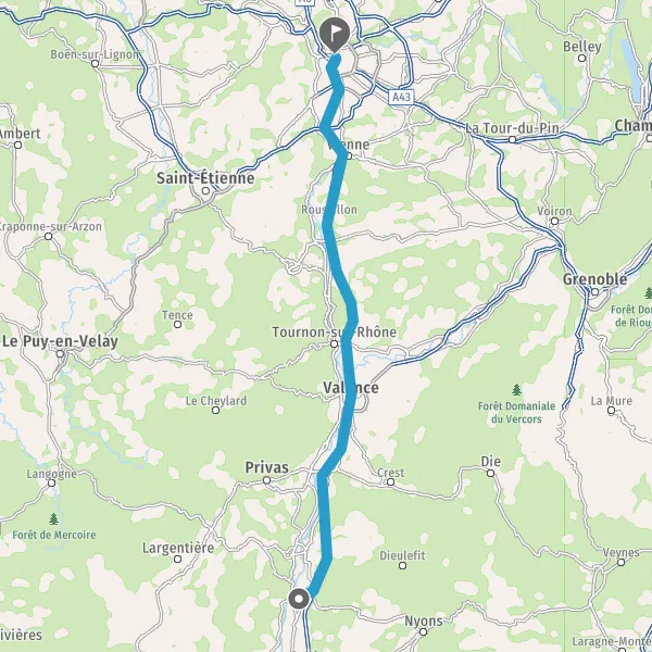 Avec le mode voiture, vous pouvez configurer vos options (type de véhicule, autoroute ou non, péage ou non, distance la plus courte), tout en ayant accès aux infos de circulation grâce à notre service d'info-trafic en temps réel. Ainsi faites des économies sur le coût ou la durée de votre voyage, en trouvant le trajet Donzère Lyon adapté à vos besoins.