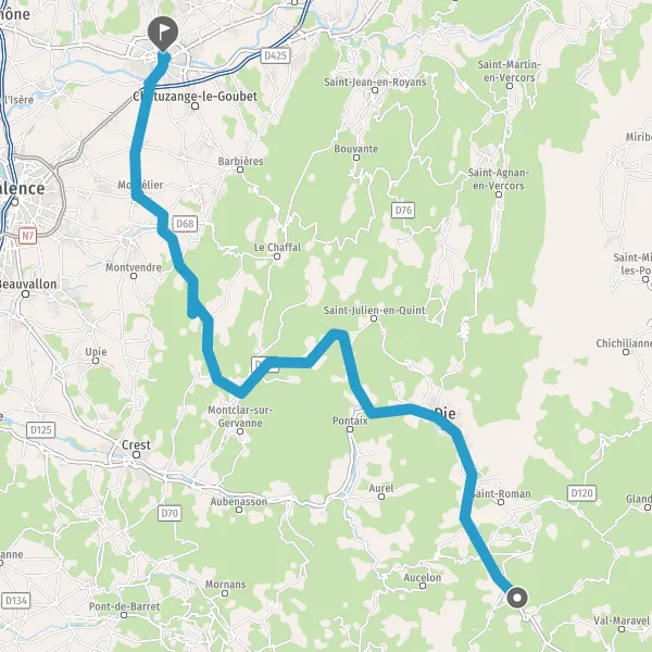 Au rond-point, prendre la 2ème sortie sur D93 (Avenue de la Clairette) et continuer sur 14 kilomètres