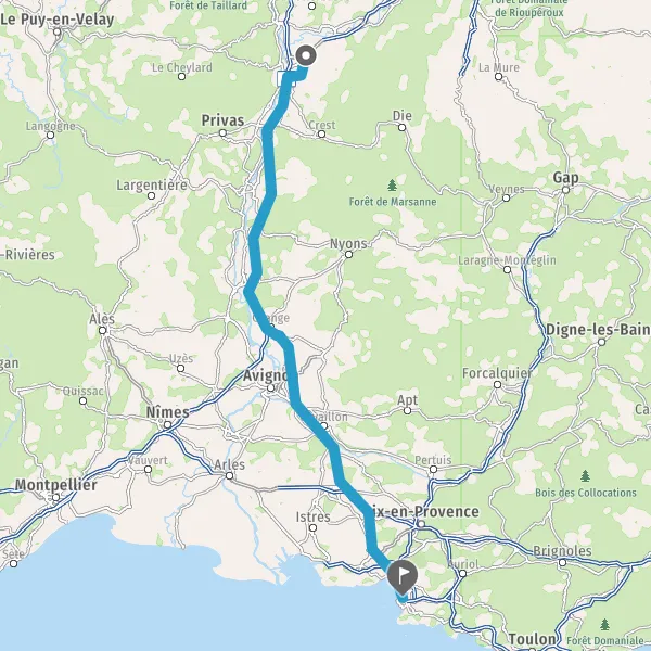 Avec le mode voiture, vous pouvez configurer vos options (type de véhicule, autoroute ou non, péage ou non, distance la plus courte), tout en ayant accès aux infos de circulation grâce à notre service d'info-trafic en temps réel. Ainsi faites des économies sur le coût ou la durée de votre voyage, en trouvant le trajet Saint-Marcel-lès-Valence Marseille adapté à vos besoins.