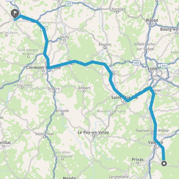 Prendre à droite et rejoindre A72. Continuer sur 53 kilomètres