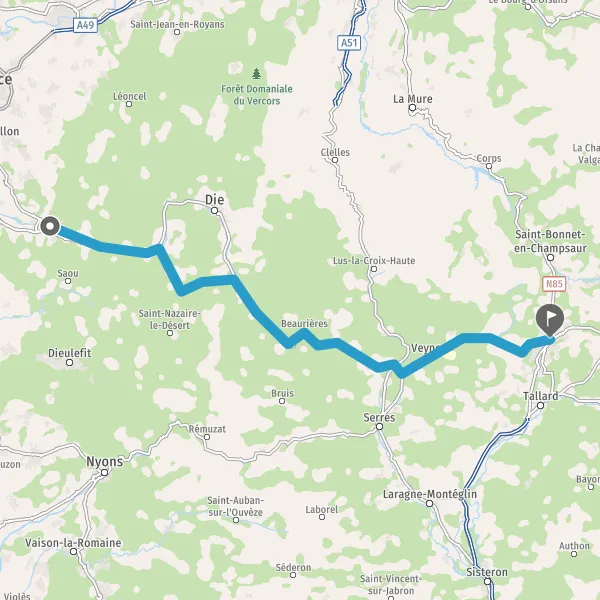 Tourner à droite sur D93 (Route de Gap) et continuer sur 20 kilomètres