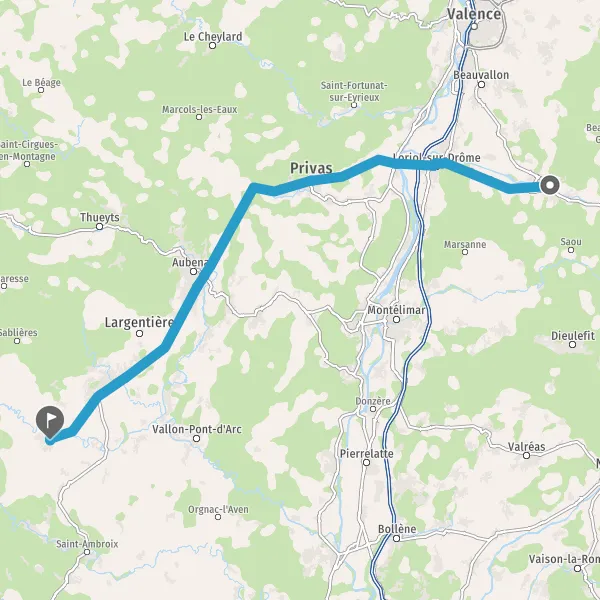 Tourner légèrement à droite sur D104 (Route de Privas) et continuer sur 6,1 kilomètres