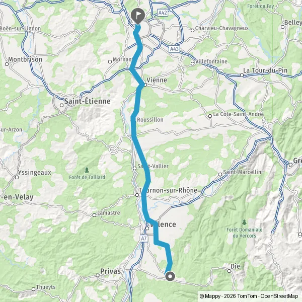 Avec le mode voiture, vous pouvez configurer vos options (type de véhicule, autoroute ou non, péage ou non, distance la plus courte), tout en ayant accès aux infos de circulation grâce à notre service d'info-trafic en temps réel. Ainsi faites des économies sur le coût ou la durée de votre voyage, en trouvant le trajet Crest Lyon adapté à vos besoins.