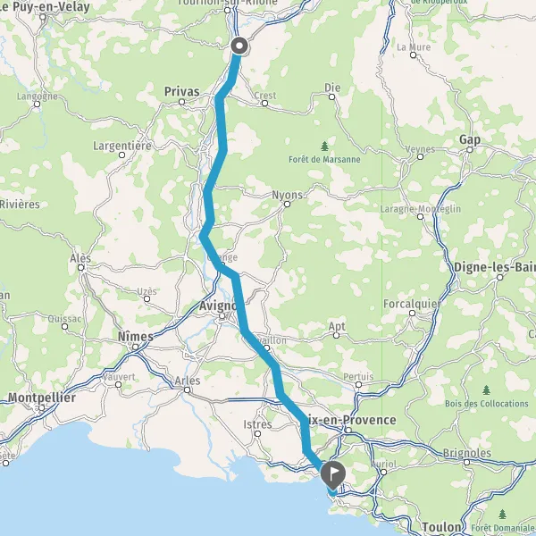Avec le mode voiture, vous pouvez configurer vos options (type de véhicule, autoroute ou non, péage ou non, distance la plus courte), tout en ayant accès aux infos de circulation grâce à notre service d'info-trafic en temps réel. Ainsi faites des économies sur le coût ou la durée de votre voyage, en trouvant le trajet Bourg-lès-Valence Marseille adapté à vos besoins.
