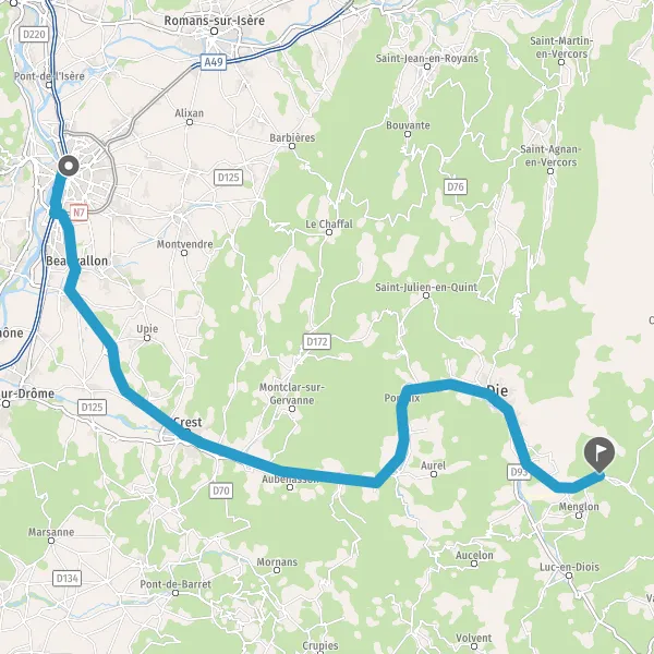 Tourner légèrement à gauche sur D93 (Avenue de la Clairette) et continuer sur 14 kilomètres