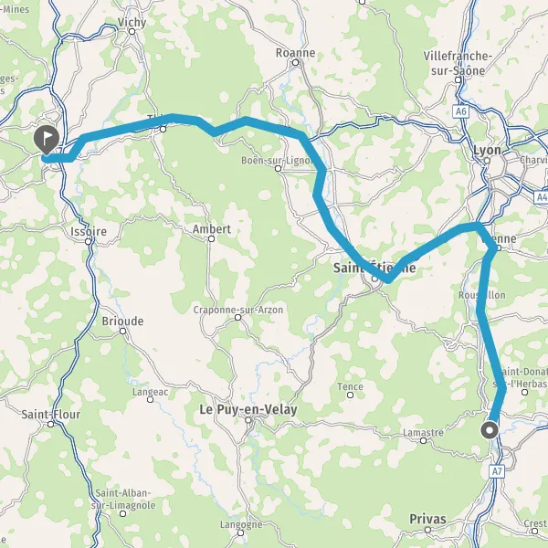 Prendre à droite et rejoindre A72. Continuer sur 53 kilomètres