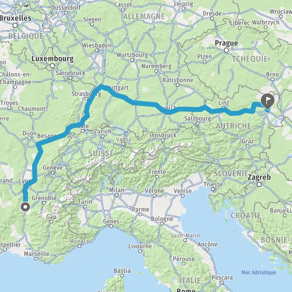Prendre à droite et rejoindre A36 E60. Continuer sur 196 kilomètres