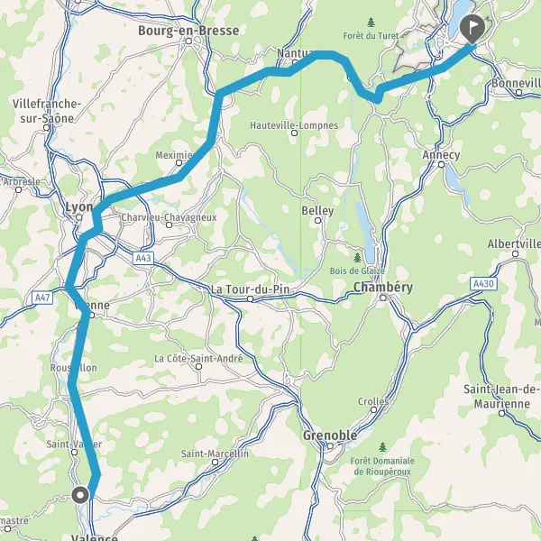 Prendre à droite et rejoindre A42. Continuer sur 4,3 kilomètres