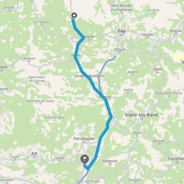Tourner à gauche sur E712 D1075 (Route de Sisteron) et continuer sur 13 kilomètres