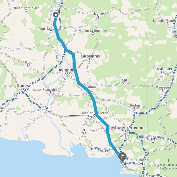 Avec le mode voiture, vous pouvez configurer vos options (type de véhicule, autoroute ou non, péage ou non, distance la plus courte), tout en ayant accès aux infos de circulation grâce à notre service d'info-trafic en temps réel. Ainsi faites des économies sur le coût ou la durée de votre voyage, en trouvant le trajet Pierrelatte Marseille adapté à vos besoins.