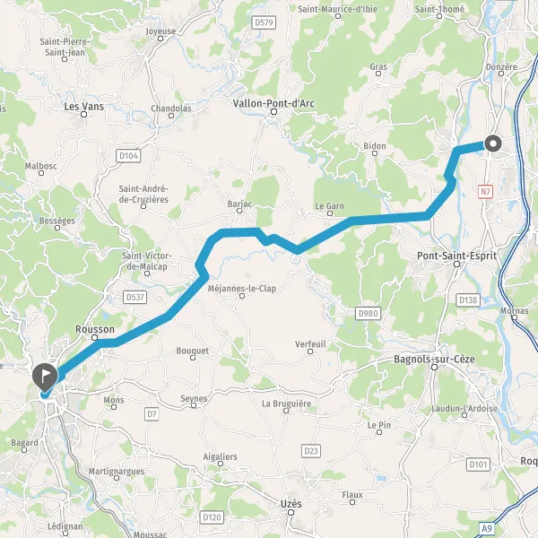 Prendre à droite et rejoindre D901 (Route de Barjac). Continuer sur 5,1 kilomètres