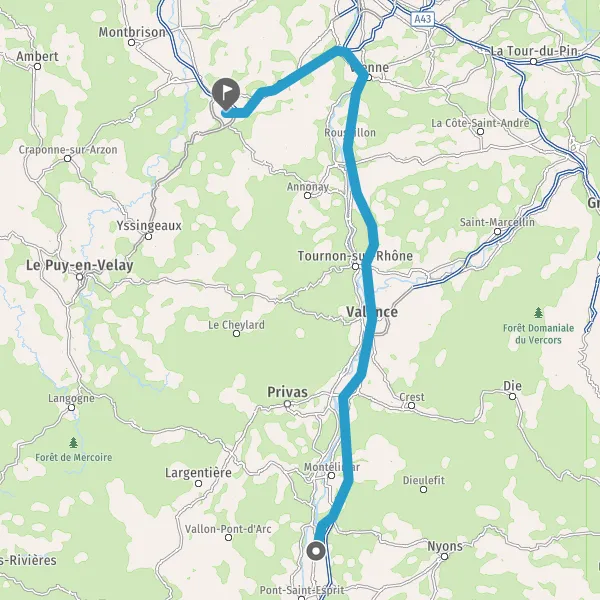 Prendre à droite et rejoindre A72. Continuer sur 1 kilomètre