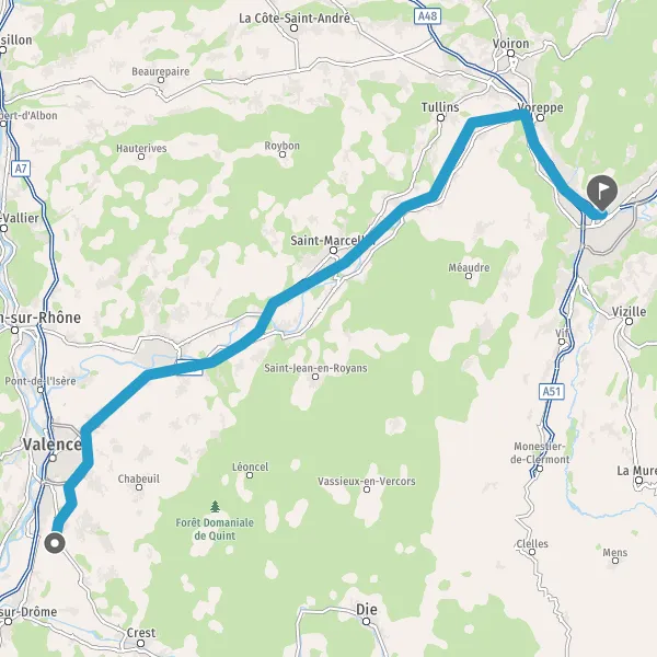 Prendre à gauche et rejoindre A48. Continuer sur 10 kilomètres