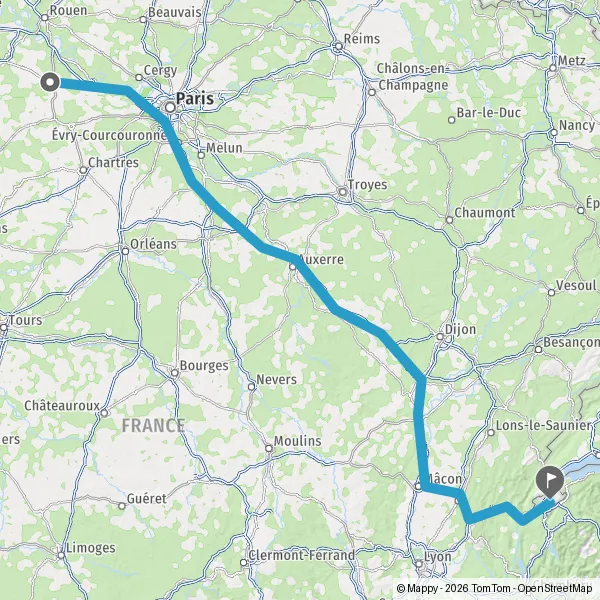 Prendre à gauche et rejoindre A6. Continuer sur 292 kilomètres