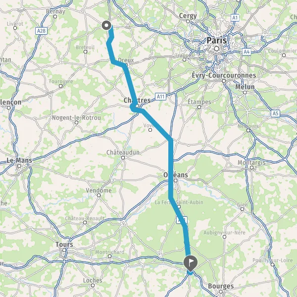 Prendre à droite et rejoindre N154 (Route de Chartres). Continuer sur 27 kilomètres