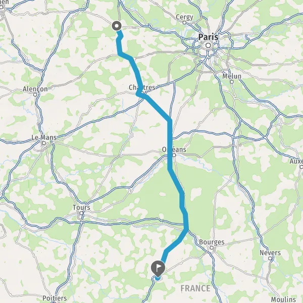 Prendre à droite et rejoindre N154 (Route de Chartres). Continuer sur 27 kilomètres