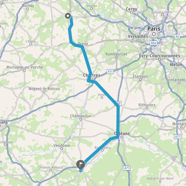 Prendre à droite et rejoindre N154 (Route de Chartres). Continuer sur 27 kilomètres